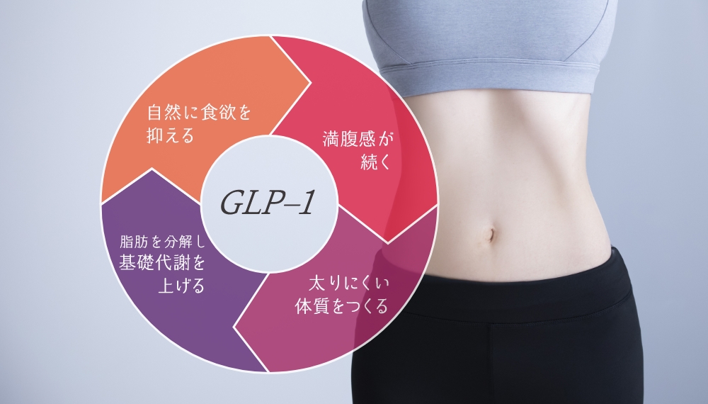 GLP-1を体内に摂取することで、自然に食欲が抑制されて食べる量が減り、体重減につながるだけでなく、脂肪燃焼作用、基礎代謝向上効果も期待できます。
